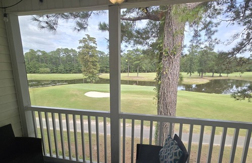 This 2 Br condo is right on the River Oaks golf course and just a few minutes drive to the beach all the attractions. It's on the 3rd floor and requires stairs (no elevator). It features a main bedroom with king size bed and a guest room with 2 double beds.
