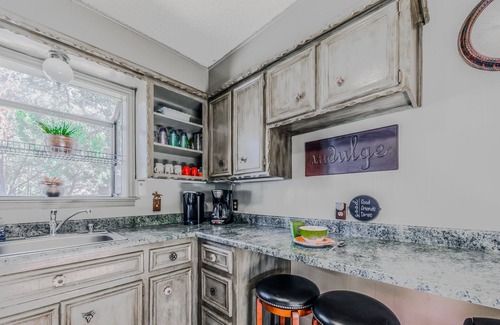 Ideal for a small family retreat or a romantic getaway, River Ridge Retreat has plenty of charm and character packed into its cozy 1,224 square feet. The two themed bedrooms and mountain-inspired décor throughout the home make it a unique and delightful space to relax and recharge. Plus, your furry friends are welcome too! With a fenced-in backyard and a few walking paths, your dogs will enjoy the adventure just as much as you.