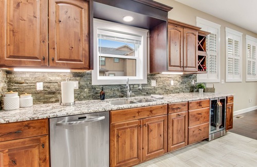 The young at heart will love the fully-carpeted garage game room complete with foosball or claiming the upper floor suite with a kitchenette, a media area with a plush sofa and TV, and a kid's cubby. Not to mention, this level includes the primary suite that boasts a private balcony and attached bathroom complete with a deep jetted tub! You'll love watching sunsets while swimming in River Breeze Reserve's heated saltwater pool. After the sun goes down, the pool is illuminated by synchronized LED lighting.
