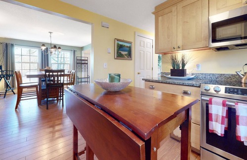 Go kayaking, canoeing, and swimming a few steps from your door at this beautiful waterfront home in Kennebunk. Tucked into a garden-and-woodland setting on the banks of the Mousam River, this home has its own swimming dock, two kayaks and a canoe for your use, and a private hot tub to enjoy each evening.