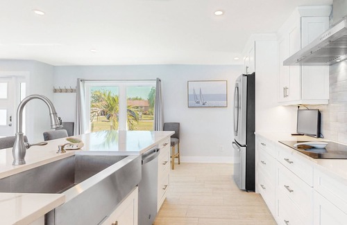 The updated interior comes fully appointed for carefree modern comfort. Whip up home-cooked meals in the mighty full kitchen, or fire up the gas grill and treat your guests to poolside barbecues out on the lanai. The open-concept living room is designed for group gatherings, with a smart TV equipped for streaming all your favorite shows or movies. The home boasts two primary suites, each featuring its own smart TV, private bathroom, and private patio access.