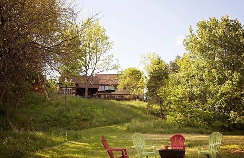 Experience rustic elegance in this lovely log and timber lodging on 20 private acres in the Shenandoah Valley. River Bluff Farm is located above the banks of the North Fork of the Shenandoah River near New Market, VA. The historic and beautiful Shenandoah Valley provides much to see and do. We’re conveniently located for access to I-81, New Market Battlefield, Shenandoah Caverns, wineries, breweries, Shenandoah National Park, and year round outdoor activities. Dogs allowed for additional fee.