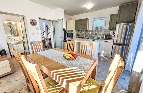 House "Riverside", surrounded by fields. 1 km from the centre of Ploče, in a quiet, sunny position, 1 km from the sea, 1 km from the beach, 100 m from the river. Private: property 190 m2 (fenced). Terrace (15 m2), garden furniture. In the house: internet access, washing machine. Public parking on the road. Supermarket 10 km, restaurant 6.7 km, bus stop 6.2 km, sandy beach 1 km. Nearby attractions: Kitesurfing Neretva 1.7 km.