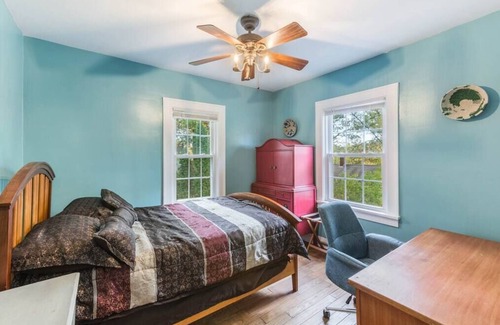 Adorned with global treasures, the space radiates a cozy, unique charm. Pets are warmly welcomed, with driveway access for your convenience. Nature's walking and biking trails lie just a few doors down.
