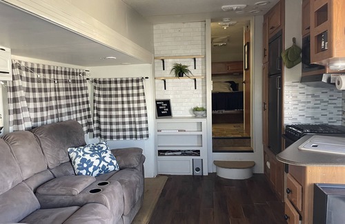 This 38 foot fully loaded trailer with living room push out is super comfortable. Sleeps 3 to 6 comfortably. Come enjoy our comfy trailer with new water heater new AC/heating unit. You’ll spend your days at the beach. When you stay at this beach front property, You have the beach and the worlds second largest tide to walk in and search for amazing sea life. On property enjoy a private pool. Shared bathrooms with showers and laundry. Of course you have your own bathroom and shower in the trailer. We also have our own bar with food connected to the property. The Pitaya with happy hour every day from 3 to 6. Come live the beach life at Rocky Point Social Spaces. If you have never been trailer park camping you are in for a Social Treat!