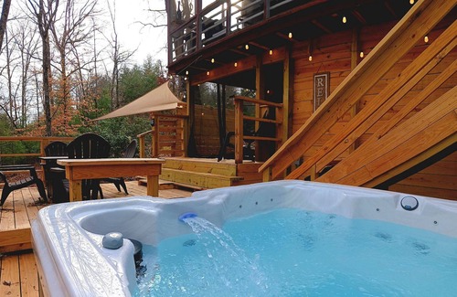 Romantic A-Frame Cabin with Hot Tub + Netflix is located in Lake Lure. Romantic A-Frame Cabin with Hot Tub + Netflix provides accommodation, featuring Hot Tub, Internet, TV, among other amenities. This Cabin features Hot Tub, Internet, TV, to make your stay a comfortable one.