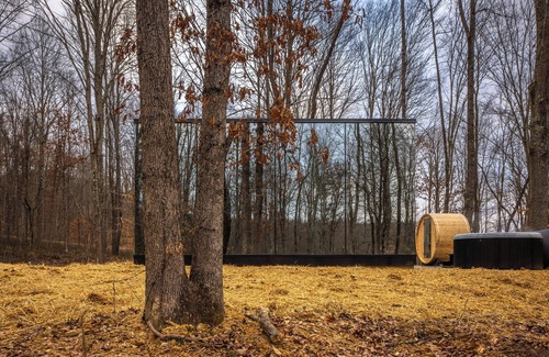 COMFORT: Flora is tucked within the trees of Hocking Hills and seamlessly blends the indoors with the outdoors, which can be enjoyed from the comfort of your bed. Sleeping two guests, the mirror cabin has luxurious interior finishes with the intention of rest, relaxation, and reconnection. Relax in your private hot tub and sauna and see the surrounding flora and fauna magnified by your dwelling. Gather around the fire pit and take in the changing seasons, which are abundant in Hocking Hills.
