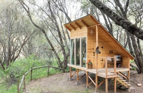 Our Nature Cabin sits on the very back of a 6 acre property with a peaceful and calming view of the back forest trees, allowing you to have privacy but keeping you close to the best Oakhurst has to offer.