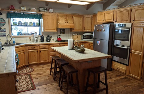 Our home is fully equipped with linens, kitchen staples, all typical small appliances (including Instantpot, large Electric Frying Pan, Crockpot), paper products, bath products/hair dryers. WIFI throughout the house; TV/DVD in living room, upstairs bedroom and in the bunk room.