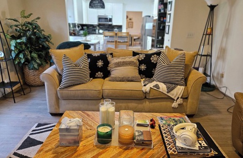 Stay comfortably in Roswell at this 5-bedroom house. With 3 king beds, 1 twin bed, and 1 queen bed, this property is perfect for large groups or families. Enjoy the serene atmosphere and modern amenities like WiFi, AC, and a jetted bathtub. The welcoming living room with an additional queen bed offers extra space for relaxation. Feel free to reach out to us during your stay - we're happy to suggest local spots to check out.