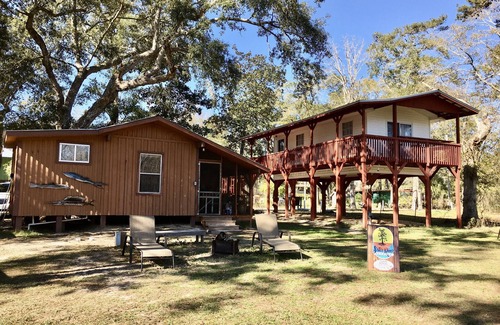 We are located deep in the woods on a river canal. Our Rustic Cabin is made of beautiful pine. Cozy with everything furnished except clothes and food. Come enjoy the wildlife, fishing and kayaking. We are 30 minutes to the beautiful beaches and Pier Park North in Panama City Beach, Florida with all the entertainment. We are out of hustle bustle of traffic. West end off hwy 79. Enjoy both!!!