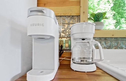 Cabin boosts retro fridge, stove and microwave, super comfy "L" shaped couch with sleeper, smart TVs in each room and in living room. The main bedroom holds a queen bed and secondary bedroom has bunkbeds. The bathroom has walk in shower. The covered front porch faces the river with gas grill and wood rockers so you can rock the day away. There is a shared fire pit on the property, additional chairs for sitting around the fire are stacked and waiting by the deck stairs.