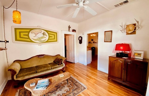 The space is rustic and quirky, and remember, built in 1905 so nothing fance will be found here~ It is furnished with an eclectic variety of furniture from around the country and the world, and every piece has a backstory. Some are based in fact, while others may be complete fiction, but everything is intended to inspire the imagination. If you are looking for a fully renovated space with big-box upgrades, oversized sofas, and fancy gadgets, this house is definitely NOT for you. The Yacht Club is a true Bisbee experience, where you can surround yourself with 120 years of history.