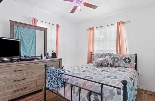 Sleeps up to 5 guests with a spacious living room and full kitchen. Smart TV’s in each room with high speed internet. Washer and dryer available for use. Enjoy the easy lake access that’s within walking distance of the home.