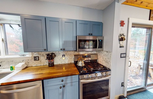 After long days on the lake or gathering around the firepit telling stories under the colors of the sunset, head inside and whip up a delicious meal in the well-equipped kitchen boasting a gas range, stainless steel appliances, wood countertops, and a dishwasher for easy cleanup. Plus, everyone can reminisce on the back deck or in one of the two living areas both featuring a flatscreen TV for streaming favorite movies as the stars come out. Okemo Mountain Resort and Killington Ski Resort are both great places to experience a fun afternoon with friends and family. Guests can pamper themselves with a spa treatment, there is shopping and dining available, and all kinds of outdoor adventures to experience, like hiking, golf, ATV tours, and more.