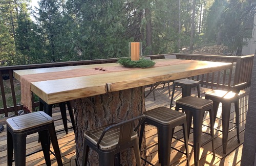 Great location close lakes, Murphys many wineries, Bear Valley ski resort, Big Trees National Park, Columbia State Park, Caverns and many hiking trails. This two story cabin has 2 bedrooms, each with a queen size bed, loft with 4 twins and 2 full bathrooms. There is a large wrap around deck on the backside and a slightly sloped property and driveway. Cabin also has internet, firepit, keruig, washer and dryer, outdoor bbq, tv with netflix and apple tv (you must use your own account), bluray dvd, central heating and air, gas fireplace, kitchen has everything needed to cook with, towels and bedding included. Kitchen does not have a dishwasher or garbage disposal.