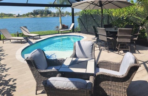 Lot #55 - Located in Ft. Myers, Florida with a 22-acre lake on the property. This lot includes a private pool and 22' x 35' screened lanai with patio furniture, grill, and smoker. Large 5,000 sq. ft. lots with 2,000 sq. ft. (20’ x 100') paver pad for RV parking and entertaining. Lot includes full hookups and high-speed internet. The resort amenities include use of the Club House, fitness center, heated pool, spa, spacious sun deck, pickle ball courts, sauna, laundry facility, 1-acre dog park (large and small dog sections), and catch and release fishing. The resort has 24-hour staffed and gated security and is limited to Class A or approved Super C, 32’ in length or longer, 12 years in age or newer, and trailers pulled behind the coach are allowed as long as they are the same design and color of the coach (no exceptions).
