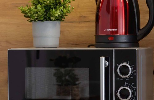 This comprehensively equipped studio in an attractive location can accommodate 2 guests. Therefore, it is a great solution for a couple's trip or for business purposes! The highly functional space consists of a living area with a kitchenette and a bathroom with a shower. A wide range of amenities and comprehensive equipment of the studio with the necessary accessories and equipment for kitchen and bathroom guarantees a comfortable stay. For a pleasant start, we provide guests with complimentary toiletries (soap, shampoo and shower gel), towels and linens. The studio also has access to high-speed free Wifi Internet and a Smart TV. On the apartment's equipment guests will also find a washing machine, which will certainly be appreciated by parents traveling with a small child or those planning a longer stay. The interior is functionally designed, distinguished by careful finishing and a modern, simple style. The appropriate choice of colors by contrast, with the addition of beige elements, creates a homely, cozy atmosphere. There is an opportunity to bring your favorite pet on the trip, as the property accepts pets.