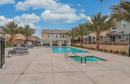 Safe and clean townhome 10 minute drive from 6 flags, pool +jacuzzi included is located in Valencia. Safe and clean townhome 10 minute drive from 6 flags, pool +jacuzzi included provides accommodation, featuring Child Friendly, among other amenities. This House features Child Friendly, to make your stay a comfortable one.