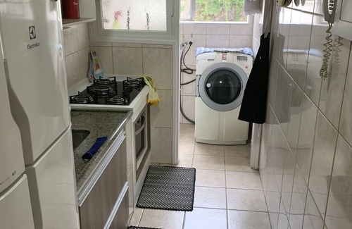 Praia de Itararé, building located on the seafront between the cable car and Santos border, only 4 suitable for walking, family atmosphere, 1 valet garage, very close to the VLT station and facility to obtain UBER. The apartment is cozy, fully renovated and has 40 meters, a bedroom with double bed, TV with open programming, a portable air conditioning 12 thousand BTU´s and space for 02 single mattresses and a sofa bed, but recommended until 04 people for comfort, a bathroom and a fully equipped kitchen with furniture designed to prepare your meals and the living room in addition to the sofa has a large table and TV with NET and also Internet. The apartment is located in the back however, both in the bedroom and living room there is a partial sea view. If requested, I provide fully sanitized bedding. On the roof of the building there is a barbecue area and a solarium with a lovely view of the waterfront, (private and reservations and payment of the cleaning fee direct with the caretaker, however is precarious access).
