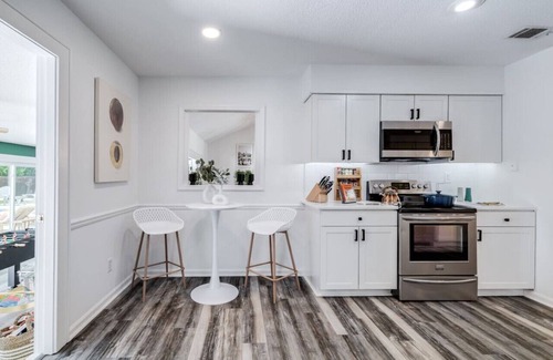 The Peach House in Savannah Georgia! Like nothing you have ever stayed in before! This beautiful, custom home is jam packed with games, art, unique amenities, and is perfect for larger groups looking for a fun and relaxing stay while exploring Savannah, Tybee Island, or both. Centrally located, you are only 10 minutes to the city and 12 minutes to the beach. Complete with a pool, hot tub, massive indoor and outdoor dining tables, and a huge game room. A little taste of everything here!