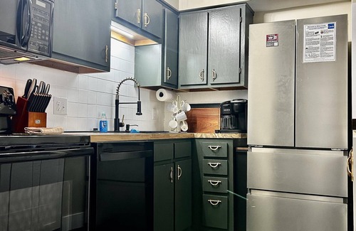 The bedroom on the main floor serves as a calming and cozy retreat with a queen bed. The upstairs loft has a queen bed with a double over double bunk bed and offers plenty of room to stretch out so you can wake up refreshed for another adventurous day!