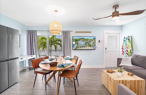 Sea Breeze places you right in the center of everything Siesta Key has to offer—sun, sand, shopping, and serenity. This breezy upstairs unit is a peaceful escape just 400 feet from the beach and steps from Siesta Key Village, designed with fresh coastal style and laid-back charm.