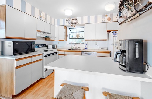 Located on the shores of Sea Colony's West Lake and close to the community's world class tennis center, this 2-bedroom, 2-bath beach retreat offers a unique single-story vacation experience. The main level offers a living room, dining area, well-equipped kitchen, full hallway bath, two bedrooms (including the master suite) and large private deck. West Lake is stocked with fish and features a white sandy beach for sunbathing. Central air conditioning, washer, dryer and more. 3 TVs, 2 DVDs, wood-burning fireplace, Wifi.