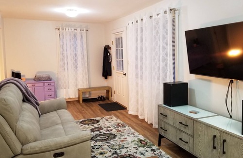 Every little detail has been planned out and carefully executed to maximize the comfort of every guest. Steps from the Historic Downtown Eastport district, you can walk to shops, restaurants and galleries! Ground floor living with elegant furnishings and amenities. Fully equipped kitchen for your convenience. Full-sized washer and dryer in-unit. Linens provided.