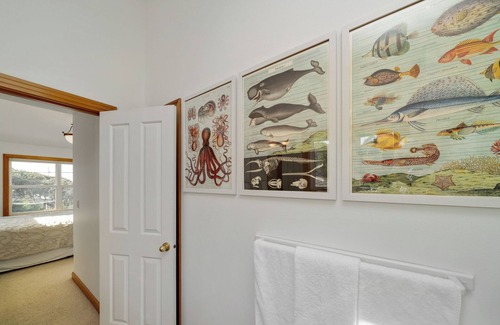 A true highlight of this retreat is the expansive ocean-facing deck, thoughtfully enclosed to shield you from the wind. Relax on comfortable deck furniture as you bask in the sun's warm embrace, or savor an evening cocktail as the sun dips below the horizon in a breathtaking display.