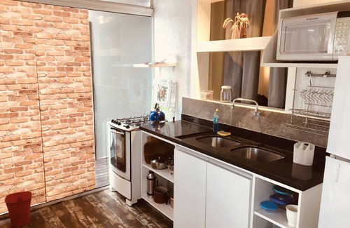 The KITCHEN has duplex refrigerator, stove with oven, microwave, blender, toaster bread, basic utensils for the routine of this environment (pots, plates, glasses, cutlery, etc;