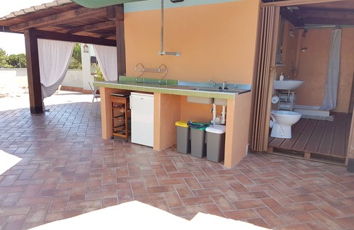 Beautiful sea view terrace with independent bathroom, kitchenette, barbecue, sun loungers, hammock, TV, fan, fridge and stove.
