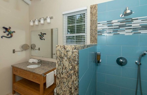 Seagrape 2 is a new beautiful large 1 bedroom suite located at the mini resort Seagrape Vista in Cruz Bay, St John. This property is a 3 min walk to the Frank Bay beach and 8-10 minutes walk to downtown Cruz Bay. The outdoor patio has a table and chairs for two facing the pool area and St Croix. The living room area has a dining table for 4. The kitchenette has all you need for cooking. The bedroom has a king size bed and the bathroom a walk-in shower. Smart TVs in living room and bedroom. In addition, an extra bed can accommodate a child up to 12 years of age if agreed with us upon booking.