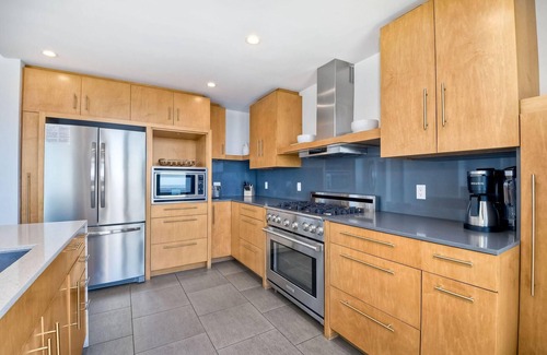 Just across the street from the sand! New Euro-Style Contemporary finishes - commercial appliances, retractable walls, forced air heating and air conditioning, large patio with 2 natural gas fire pits and grill , 55' Smart TVs, super-fast and reliable internet/wi-fi...