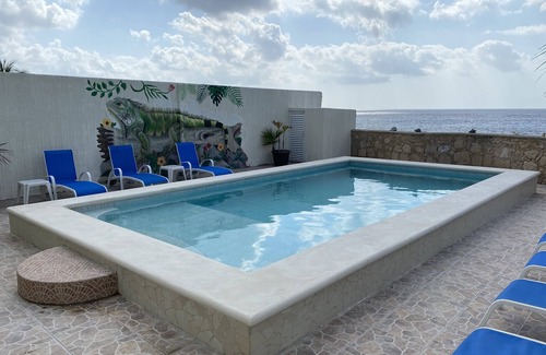 Spanning three levels, Las Iguanas features bedrooms and common areas on two levels, while the third boasts direct ocean access, an outdoor bar, a refreshing fresh-water shower, a spacious man-made beach, a pool, and mesmerizing ocean vistas. Surrounding the villa is a stunning coral reef, perfect for underwater exploration and snorkeling adventures.