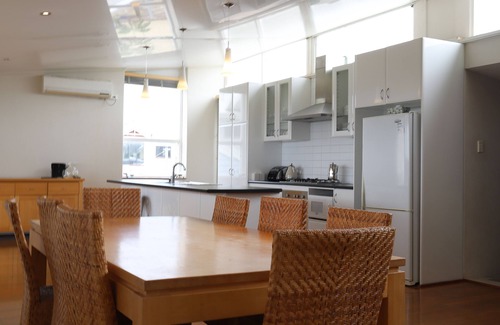Double glass sliding doors open off all key living areas, filling the lounge, dining and fully equipped kitchen with natural light.