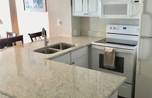 Newly remodeled condo with granite and new cabinets. There is a 55” flat panel TV on the wall in the living room and 32' flat panel TV's in the bedrooms. There are also 2 queen beds in the 2nd bedroom (instead of 2 doubles).