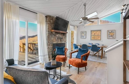 This NEWLY remodeled, stylish, 3 bed, 3 bath home is a signature Unique Vacation Property, a private mountain escape near the quaint village of Canton, only 30 minutes from vibrant downtown Asheville. Each room features a King bed and en suite bath, separate outdoor sitting areas, and can sleep 7. We are pet-friendly! Enjoy the long range views from top deck while grilling, soak in the hot tub, or play endless games of ping pong - this vacation home has something for the whole gang to enjoy!
