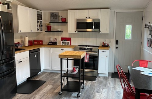 Remodeled - new furnishings and new beds throughout!! Brand new bathrooms! New appliances with convection oven! All new decor!! Book your getaway today!! Secluded cabin on over 1.5 acres of land. This “rockin’” vacation rental is ready to welcome you to southern Wisconsin. Inside this single-level retro vibe music lovers home, you'll find a well-equipped, full kitchen with a dining area for 6, perfect for meals or game nights - and a living area with comfortable furniture, coffee/wine bar and a wall-mounted flatscreen Roku TV for streaming your favorite shows and movies. Super Fast Free WiFi. Added additional TV to the master bedroom! Outside, the fun really begins with a furnished deck with a gas grill for summertime cookouts, firepit and some wood to get you started, an absolutely enormous yard to play games (bags boards included!) and to enjoy the abundant wildlife. Jump on your ATV's or snowmobiles and get on the trails easily! Plenty of parking for your boats and toys!