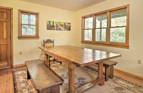 Savor the breathtaking scenery of the Blue Ridge Mountains from this rustic and cozy 4-bedroom, 2.5-bath home in Brevard. After a day of hiking, mountain biking, or leaf-peeping, you'll love coming back to this vacation rental to warm up by the wood-burning fire, inside or out. If you're visiting in warmer months, relax in the hammock, or lounge on the spacious porch. Fan of waterfalls? You'll find no shortage in the surrounding area, including the highly Instagram-able Looking Glass Falls.