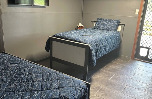Tucked away in complete privacy just five minutes from the beach, this gated and secure property offers a unique dual-dwelling experience: a charming cabin and a rustic-chic barn, comfortably accommodating up to 10 guests.