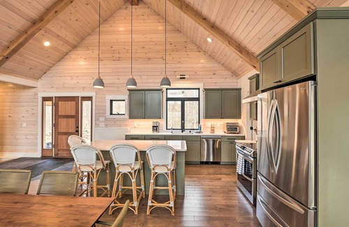 Find a moment of zen at this picturesque home in Kingfield! The 4-bedroom, 3-bath vacation rental is great for families and boasts a tastefully decorated interior with an open-concept main floor, plus additional living space on the lower level. Spend peaceful mornings on the deck to soak up the panoramic mountain views, and gather around the fire pit in the evenings. Seeking more adventure? Ski at Sugarloaf Mountain, hike the Bigelow Mountain range, and explore the mountain bike trail system!