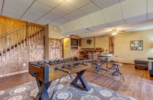This country cabin in North Georgia is the perfect spot for your next mountain getaway. Offering two furnished decks to soak in the hot tub with wooded views, and a beautiful gas fireplace, you'll love relaxing at this home away from home. Sip your morning coffee al fresco, test your foosball skills against friends or family members, or gather around the flatscreen TV for movie night.
