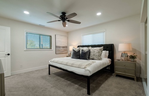Discover Sycamore Serenity, a stunning retreat nestled in Fallbrook. Perfect for 10 guests, it features a luxurious master suite, cozy bedrooms, a private casita, a fully equipped kitchen, and a coffee bar. Enjoy the outdoor oasis with a pool, spa, and grass area for games like cornhole and axe throwing. The main and guest houses offer modern comforts, including Smart TVs and a sleeper sofa. Close to wineries and hiking, it's ideal for relaxation or adventure. Pet-friendly for your furry friends.