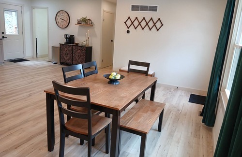 On the main floor we have an open concept, fully stocked kitchen with a coffee bar, dining table for 6 and breakfast bar for 2. We also have a high chair available for your convenience! Instructions for the coffee maker are found inside our guest information book we keep on the desk. Plenty of kitchen amenities provided including an air fryer.