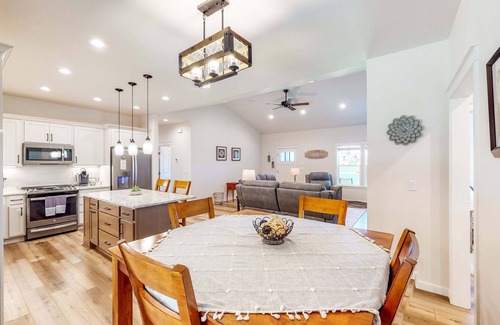 Walking into your stay after a full day of adventure, you will instantly take notice of the light-filled living room with its gas fireplace, soft seating, and large TV. The adjacent full kitchen gleams with its granite countertops, center island, and stainless steel appliances. When mealtime rolls around, dine family-style at the formal dining table.