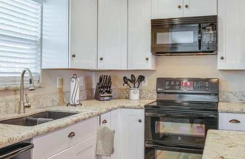 KITCHEN: Stove/oven, microwave, dishwasher, refrigerator w/ ice maker, dishware/flatware, Keurig single-serve coffee maker