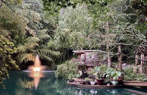 Charming Bamboo Bungalow perched over a natural koi pond, overlooking Lake Lanier, adjacent to a majestic bamboo forest. Perfect for couples or solo travelers looking for a peaceful, rejuvenating retreat in a gorgeous natural setting of three acres of landscaped gardens and natural woodlands.