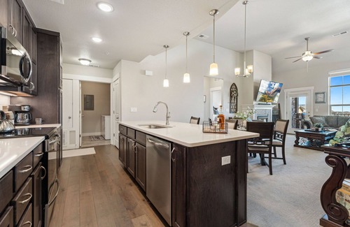Nestled next to the scenic Highland Meadows Golf Course, this second-floor apartment offers a serene retreat with modern amenities and charming rustic farmhouse decor. The spacious living area features a Samsung Smart TV with a 70” screen and premium sound system, high-end furnishings and a perfectly-appointed kitchen with a large center island and valued ceilings. Not to mention the abundance of highly desired amenities offered through the Community Clubhouse!