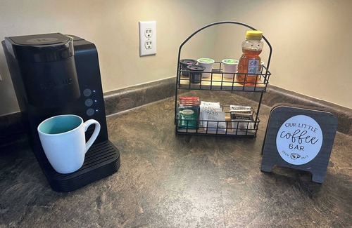 The upstairs bedroom accommodates 2 extra beds, offering additional sleeping options. Although it doesn't have a bathroom, a full bathroom is conveniently located in the basement. Additionally, there's a half bathroom in the hallway for added convenience. With a total of 3.5 bathrooms, the property ensures all your needs are met, providing essentials like fresh towels, bed sheets, soap, toilet paper, and pillows.